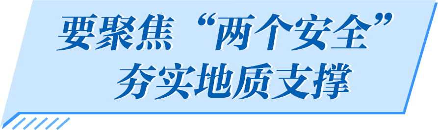 扛牢维护国家能源资源安全重要使命,加强矿产勘查、推动地矿融合、提升找矿能力,全方位筑牢资源安全屏障。
